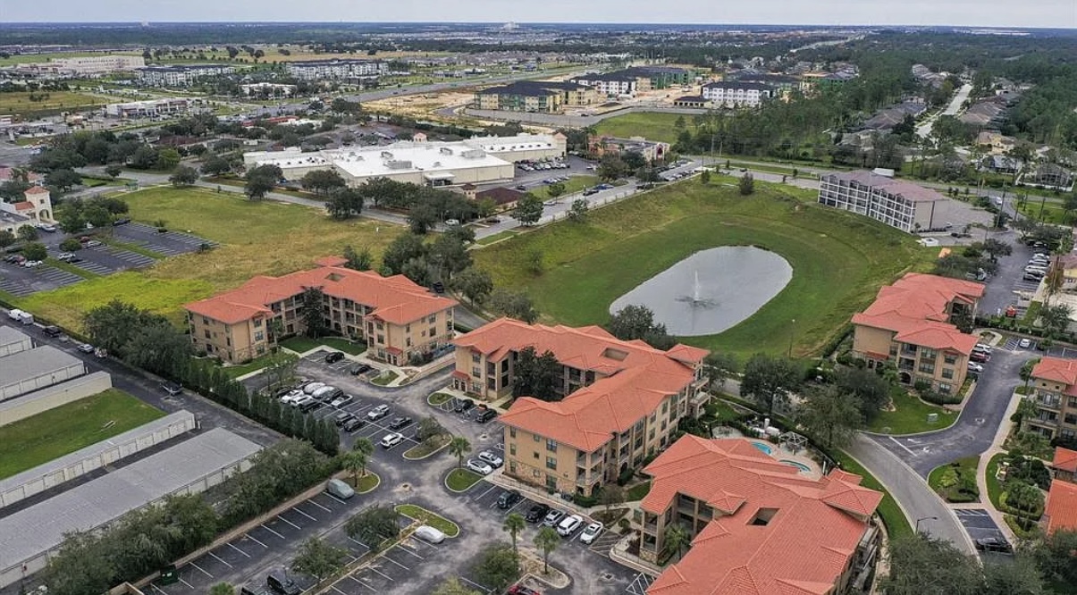Beautiful resort of Bella Piazza in the Davenport community with 2 heated pools and deck area with outdoor furniture and loungers.